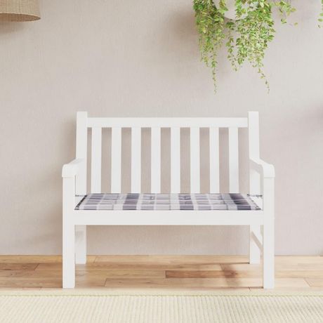 Coussin de banc de jardin motif a carreaux gris 120x50x3 cm