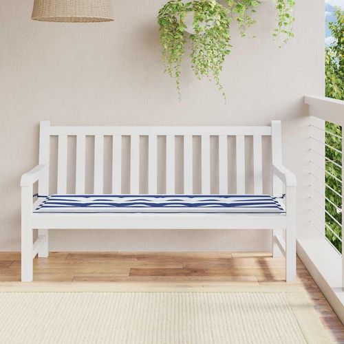 Coussin de banc de jardin rayures bleues et blanches 150x50x3cm
