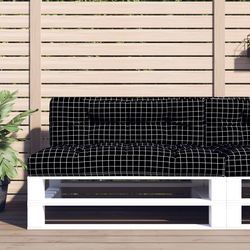 Coussin de palette motif a carreaux noir 120x40x12 cm tissu