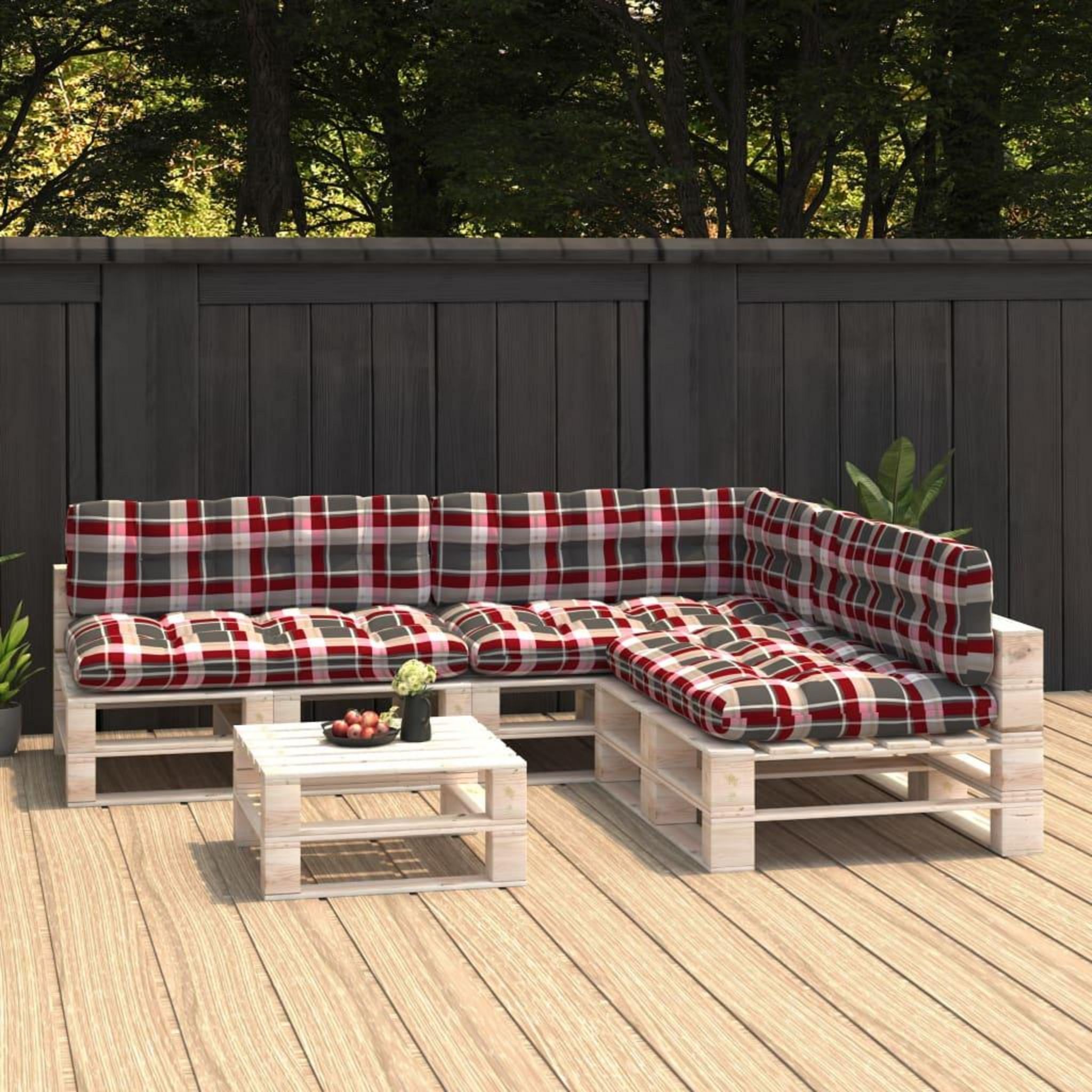 Coussins de canape palette lot de 7 Motif a carreaux rouge