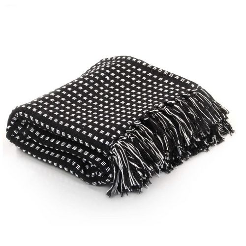 Drapez la couverture par-dessus une chaise, l'accoudoir d'un canape ou votre lit, et elle ajoutera instantanement une atmosphere relaxante a votre interieur. Le plaid est fait de coton et est doux au toucher. Avec son design tendance et ses glands, cette couverture a carres sera un choix parfait pou