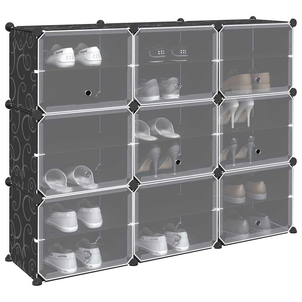 Cubes de rangement 9 pcs avec portes noir PP