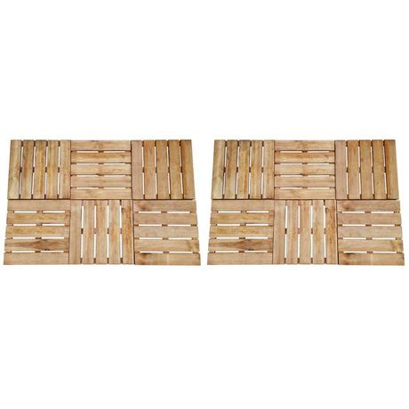 Les dalles de terrasse sont en pin impregne, qui est resistant a l'usure, aux intemperies et a la pourriture. Les beaux grains de bois ajoutent un charme rustique et rendent chaque piece unique. La livraison inclut 12 dalles de terrasse.