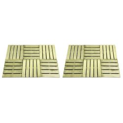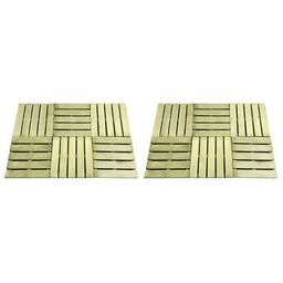 Les dalles de terrasse sont en pin impregne, qui est resistant a l'usure, aux intemperies et a la pourriture. Les beaux grains de bois ajoutent un charme rustique et rendent chaque piece unique. La livraison inclut 12 dalles de terrasse.