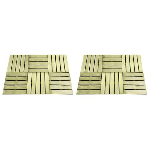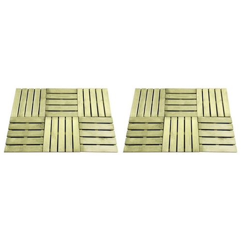 Posez un magnifique plancher en bois dans votre jardin, sur votre patio ou au bord d'une piscine avec notre ensemble de 12 dalles de terrasse. Les dalles de terrasse sont en pin impregne, qui est resistant a l'usure, aux intemperies et a la pourriture. Les beaux grains de bois ajoutent un charme rus