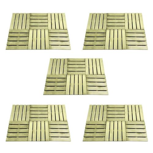 Posez un magnifique plancher en bois dans votre jardin, sur votre patio ou au bord d'une piscine avec notre ensemble de 30 dalles de terrasse. Les dalles de terrasse sont en pin impregne, qui est resistant a l'usure, aux intemperies et a la pourriture. Les beaux grains de bois ajoutent un charme rus