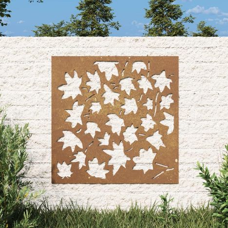 Decoration murale jardin 55x55 cm acier corten design feuille