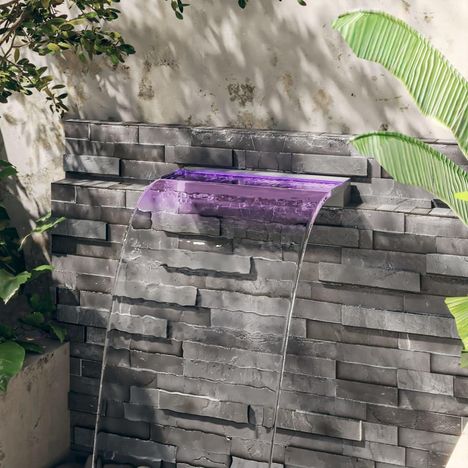 Ce deversoir pour cascade avec des lumieres LED colorees constitue un supplement decoratif a votre etang ou piscine. Obtenez-en un des maintenant et profitez du son apaisant et de la vue de l'eau qui coule !