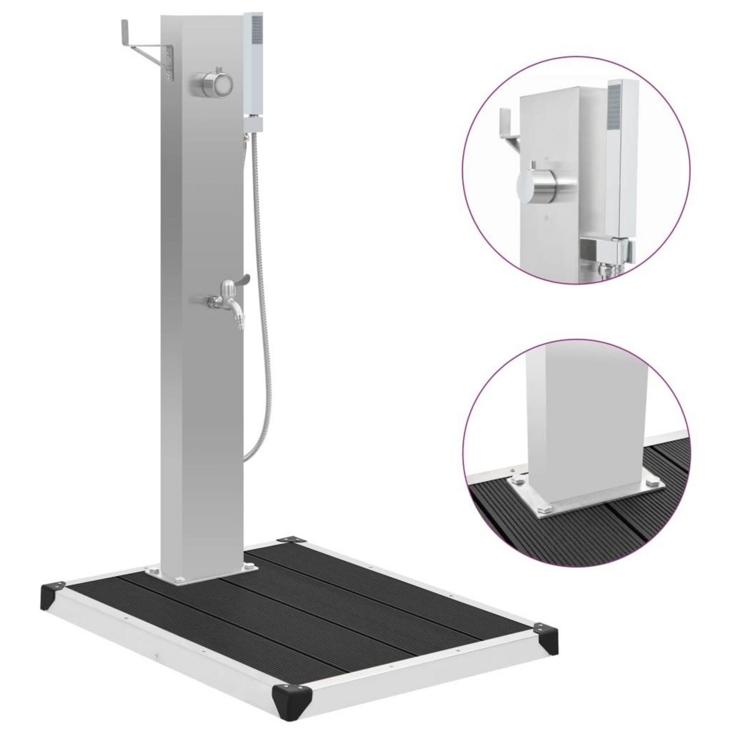 Douche d'exterieur avec receveur de douche WPC Acier inoxydable