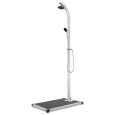 Cette douche d'exterieur est en aluminium, ce qui la rend resistante aux intemperies. Le systeme de douche a une tete de douche et une douchette pour repondre a vos besoins de jardinage, d'arrosage et de douche rapide. La douchette est equipee d'un tuyau flexible a double verrouillage d'une longueur de 1,5 m. Elle est egalement equipee d'un support de douchette qui peut egalement etre utilisee pour placer la serviette.