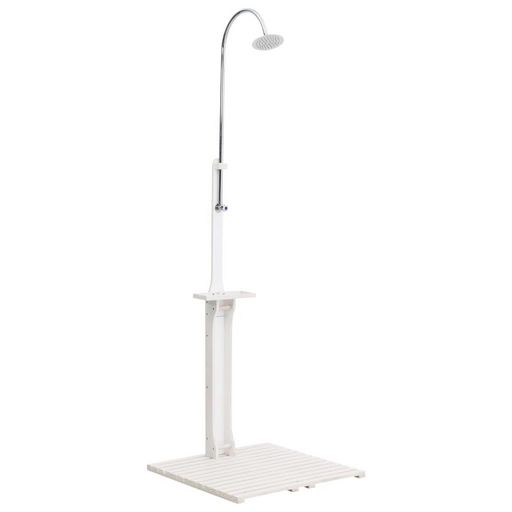 Cette douche de jardin en bois est faite de bois dur et de bois de sapin, tous deux caracterises par leur resistance absolue aux intemperies et leur durabilite.