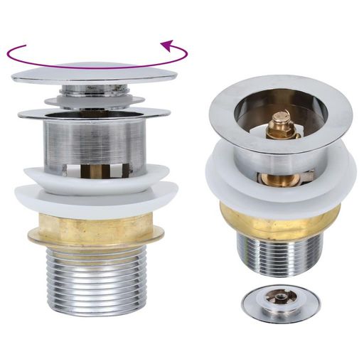 Ce drain a poussoir sans fonction de debordement a une structure simple et pratique et est destine a etre le meilleur choix pour votre salle de bain. Fabrique en zinc et en laiton, ce tuyau de vidange est durable et assure une longue duree de vie. La taille de la connexion filetee est de 1¼ pouce. D