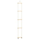Avec une largeur de 30 cm et une épaisseur de 6 cm, cette échelle garantit une prise en main sécurisée. Sa structure à 5 niveaux espacés permet un apprentissage progressif de l'escalade, supportant jusqu'à 50 kg. Les anneaux de suspension aux extrémités facilitent son intégration à des structures de jeu existantes comme les balançoires ou les tours d'activités.
