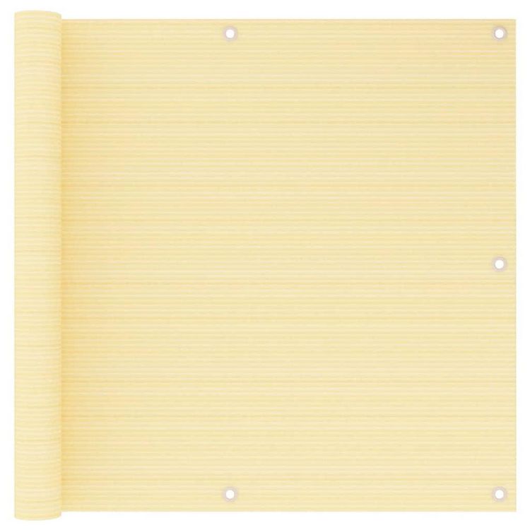Ce store de balcon, fabrique en PEHD (polyethylene haute densite), est resistant aux moisissures et aux UV. La structure speciale en tissu « ouvert » permet au vent de passer, de sorte que vous puissiez toujours profiter d'une brise fraîche sur le balcon. La protection peut etre facilement fixee au balcon avec ses œillets en aluminium et la corde incluse.