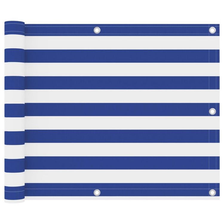 Ecran de balcon Blanc et bleu 75x500 cm Tissu Oxford