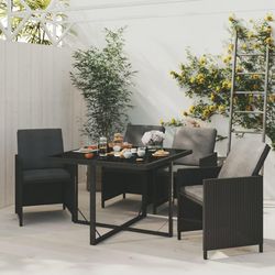 Fabrique en resine tressee resistante aux intemperies et impermeable, cet ensemble de salle a manger d'exterieur est facile a nettoyer, resistant a l'usure et adapte a une utilisation quotidienne. Le cadre en acier enduit de poudre rend la table et les chaises robustes et durables. Le dessus de table en verre est ideal pour placer des boissons, de la nourriture ou des objets decoratifs. Les coussins d'assise et de dossier epais et souples, remplis de mousse, ajoutent egalement au confort d'assise. De plus, vous pouvez tirer le dossier vers le bas et ranger les chaises sous la table, economisant ainsi un espace de rangement precieux lorsque l'ensemble n'est pas utilise. Grace a la construction legere, tous les articles sont faciles a deplacer.