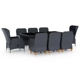 Ensemble a manger 9 pcs avec coussins resine tressee gris fonce