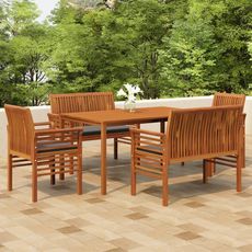 Ensemble a manger d'exterieur 5 pcs et coussins Acacia solide