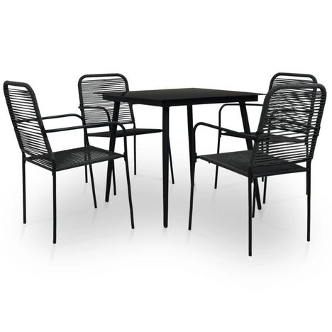 Ensemble a manger d'exterieur 5pcs Corde en coton et acier Noir
