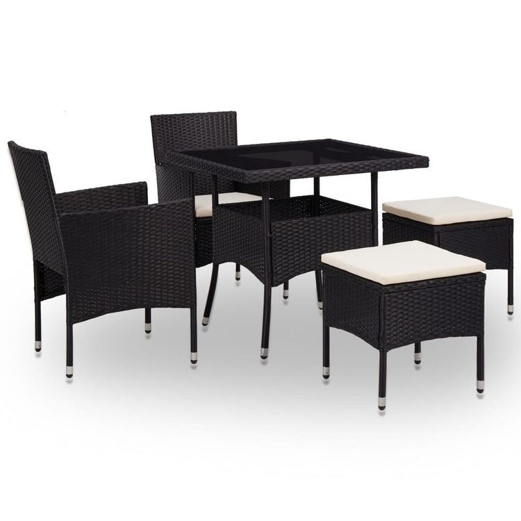 Ensemble a manger d'exterieur 5pcs Noir Resine tressee et verre