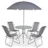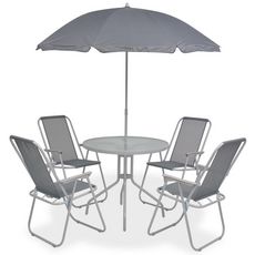 La livraison inclut 4 chaises, 1 table et 1 parasol.
