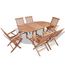 - Le produit est applique avec une belle finition pour donner au bois une couleur chaude. En outre, cette table a un trou pour pouvoir installer un parasol. La livraison comprend 1 table extensible et 6 chaises pliables.