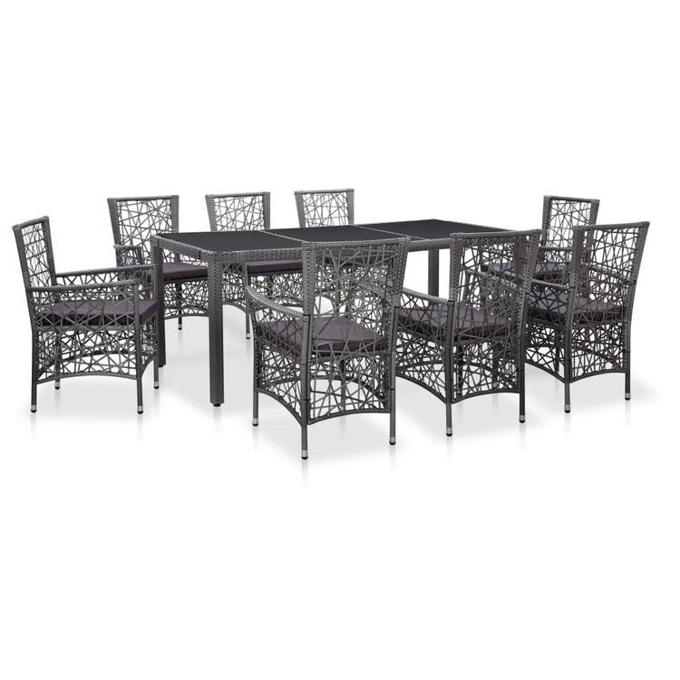 Ensemble a manger d'exterieur 9 pcs Resine tressee Gris
