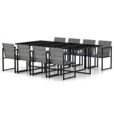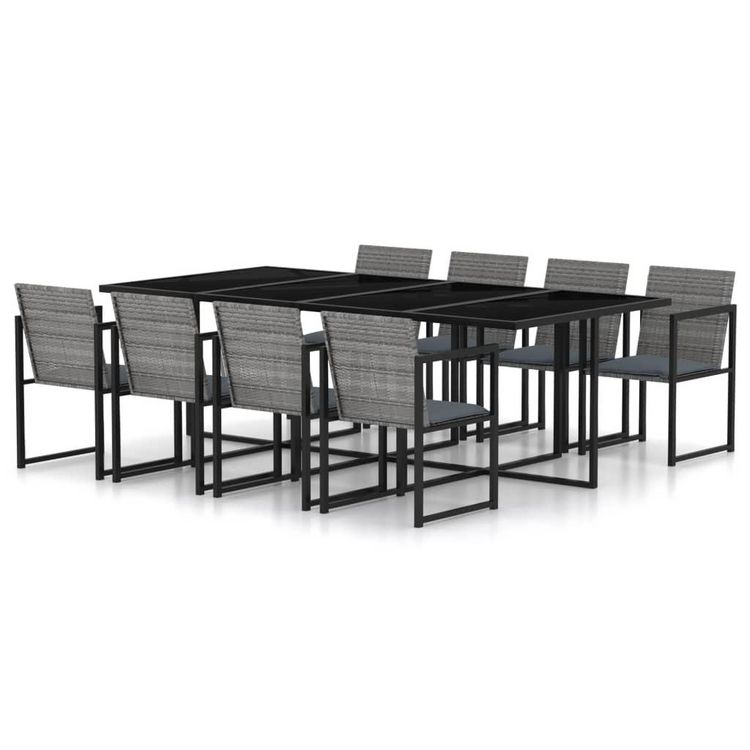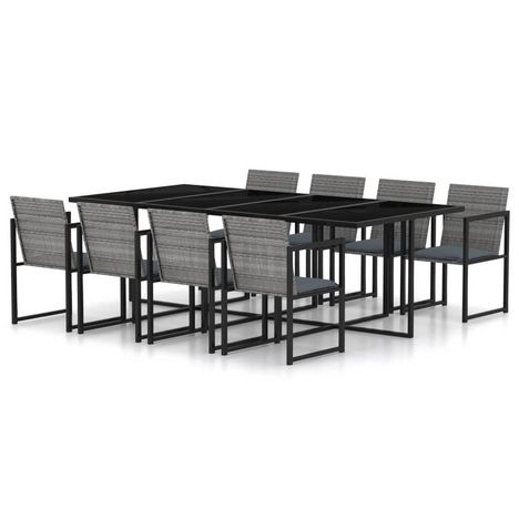 Ensemble a manger d'exterieur 9pcs coussins Resine tressee Gris