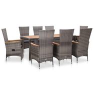 Ensemble a manger d'exterieur 9pcs coussins Resine tressee Gris