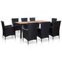 Ensemble a manger d'exterieur 9pcs coussins resine tressee noir