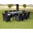 Ensemble a manger d'exterieur 9pcs coussins resine tressee noir