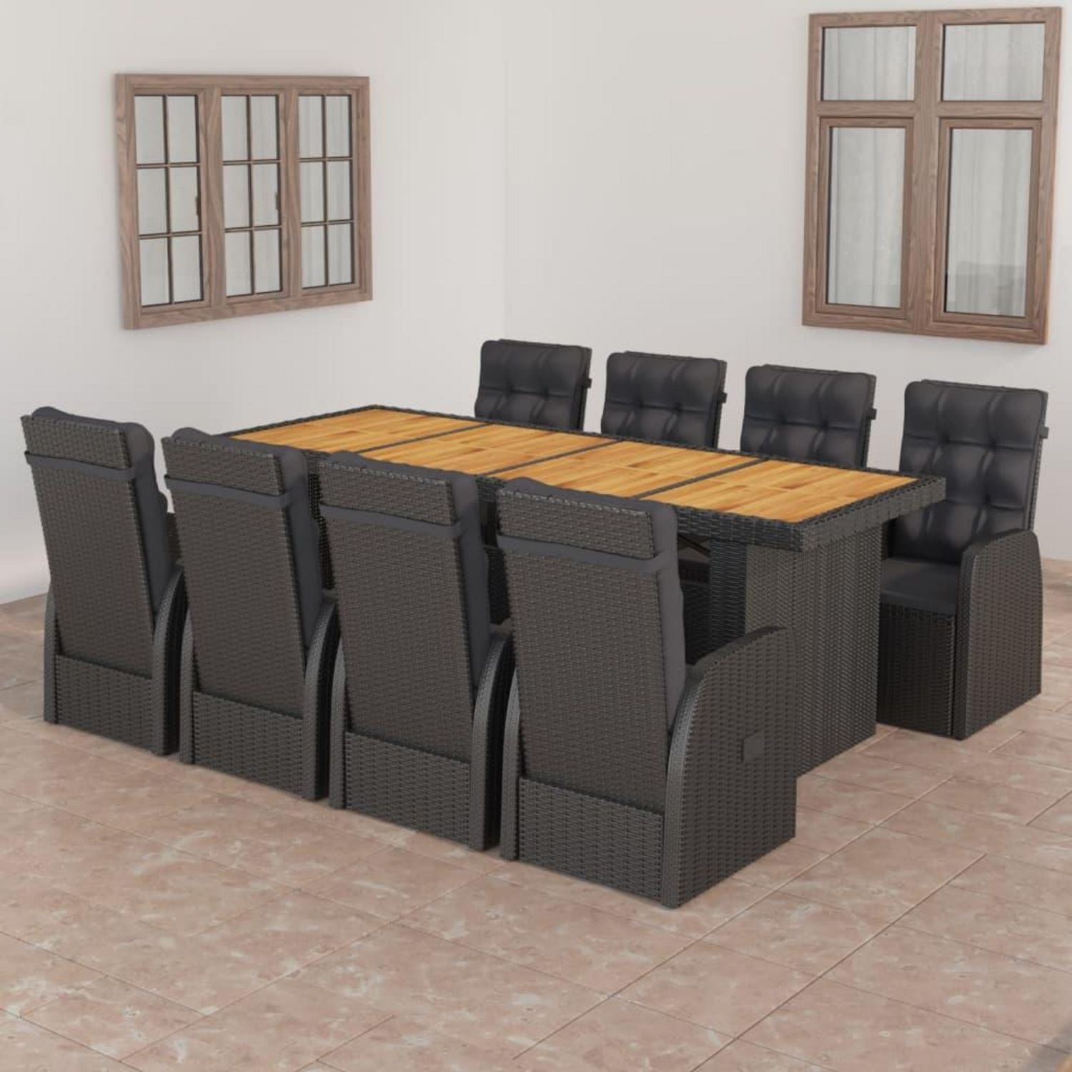Ensemble a manger d'exterieur 9pcs coussins resine tressee noir