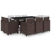 Ensemble a manger d'exterieur et coussins 11 pcs resine tressee