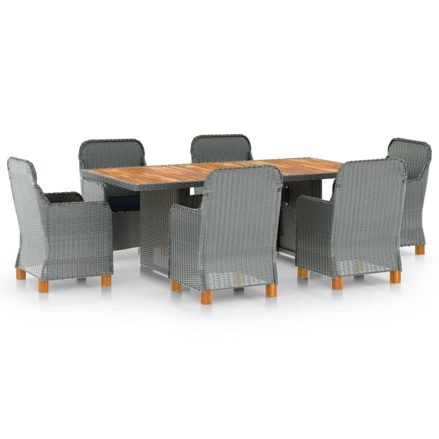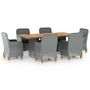Ensemble a manger d'exterieur et coussins 7 pcs resine tressee
