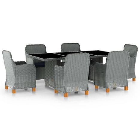 Ensemble a manger d'exterieur et coussins 7 pcs resine tressee