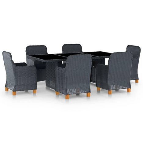 Ensemble a manger d'exterieur et coussins 7 pcs resine tressee