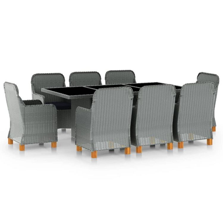 Ensemble a manger d'exterieur et coussins 9 pcs resine tressee