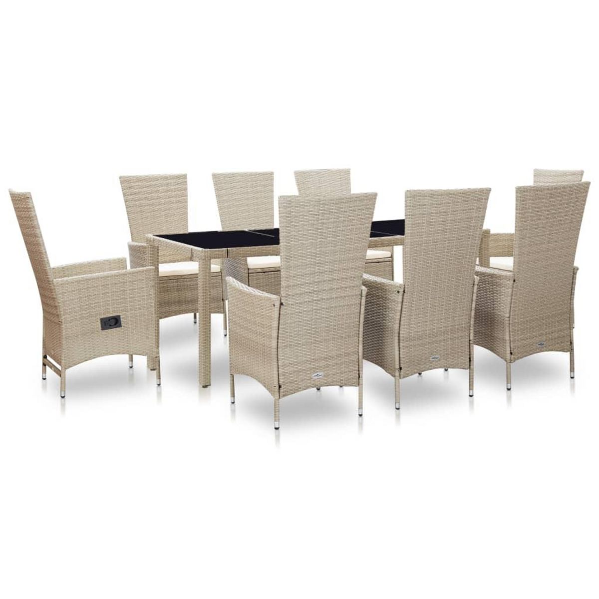 Ensemble a manger d'exterieur et coussins 9 pcs resine tressee