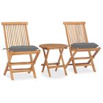 Ensemble a manger d'exterieur pliable avec coussin 3 pcs Teck