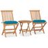 Ensemble a manger d'exterieur pliable avec coussin 3 pcs Teck