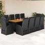 Ensemble a manger de jardin 11 pcs coussins noir resine tressee