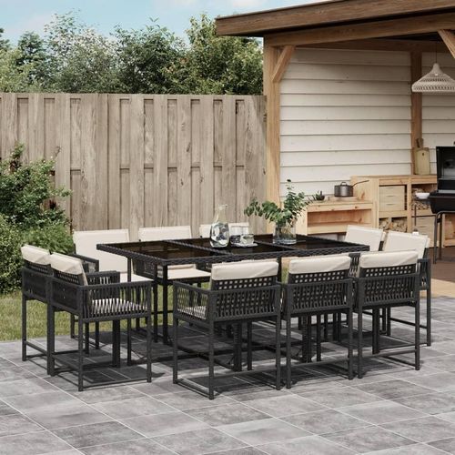 Ensemble a manger de jardin 11 pcs coussins noir resine tressee