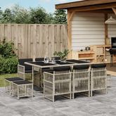 Ensemble a manger de jardin 11pcs avec coussins gris poly rotin