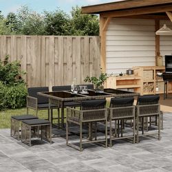 Ensemble a manger de jardin 11pcs avec coussins gris poly rotin