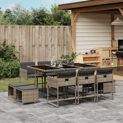 Ensemble a manger de jardin 11pcs avec coussins gris poly rotin