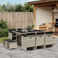 Ensemble a manger de jardin 11pcs avec coussins gris poly rotin