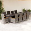 Ensemble a manger de jardin 11pcs avec coussins gris poly rotin