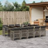 Ensemble a manger de jardin 11pcs avec coussins gris poly rotin