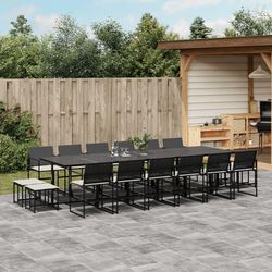 Ensemble a manger de jardin 17 pcs coussins noir resine tressee