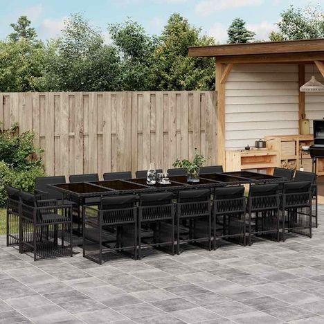 Ensemble a manger de jardin 17 pcs coussins noir resine tressee